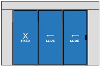 2 Moving Glass Panel + 1 Fixed Glass Panel